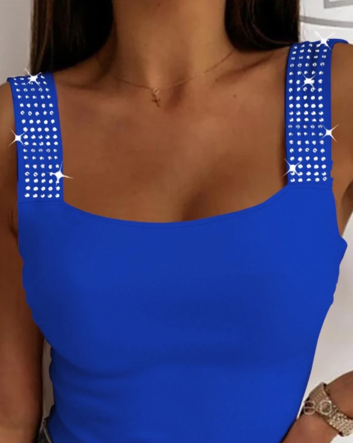Adoptez un style frais et lumineux cet été avec ce cami top simple et élégant, sublimé par de délicats strass. Sa coupe minimaliste et son tissu confortable en font une pièce incontournable pour les tenues du quotidien, tout en ajoutant une touche chic parfaite pour l’été.