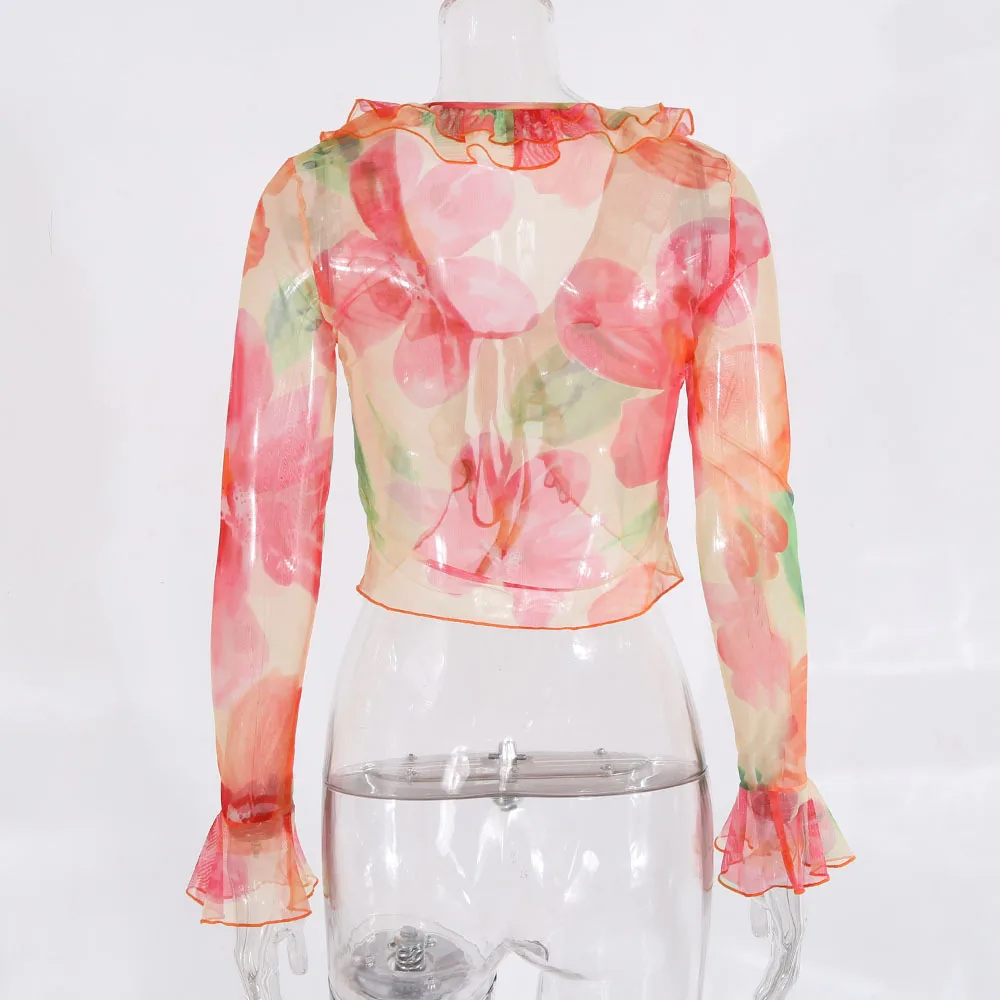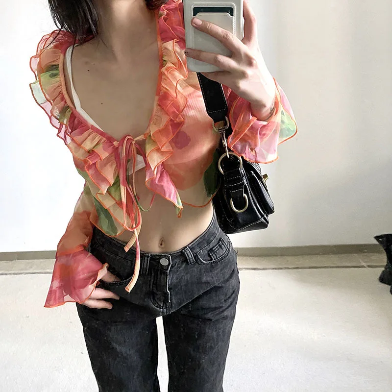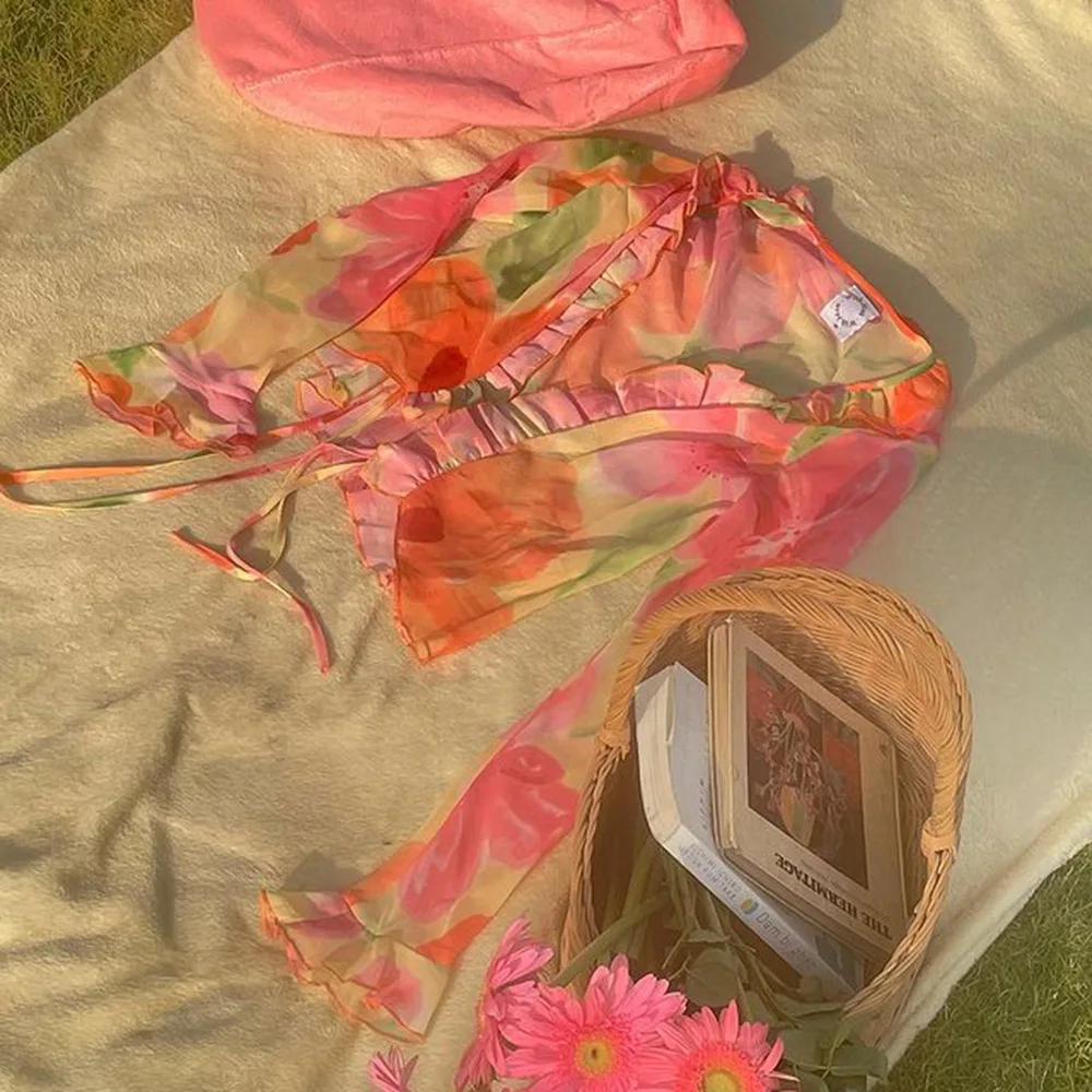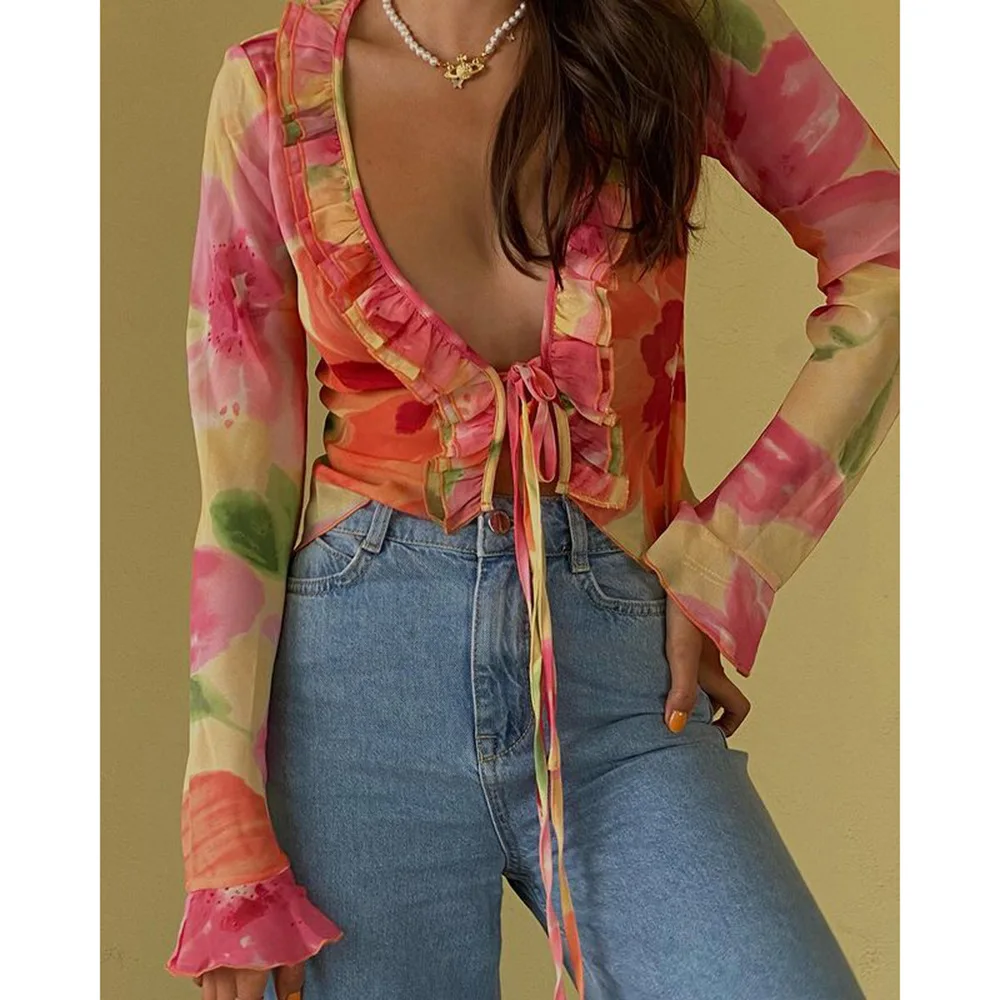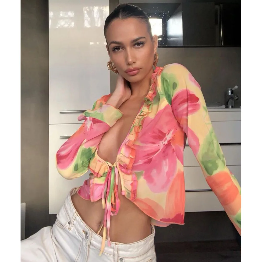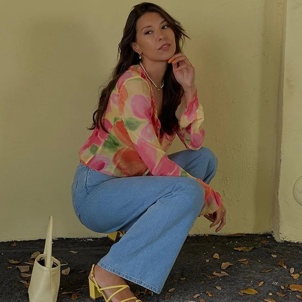 Un ensemble qui combine sexy, sophistication et originalité. Le mélange du transparent, du V profond et du cardigan imprimé crée un look immédiatement stylé — parfait pour se démarquer en été.