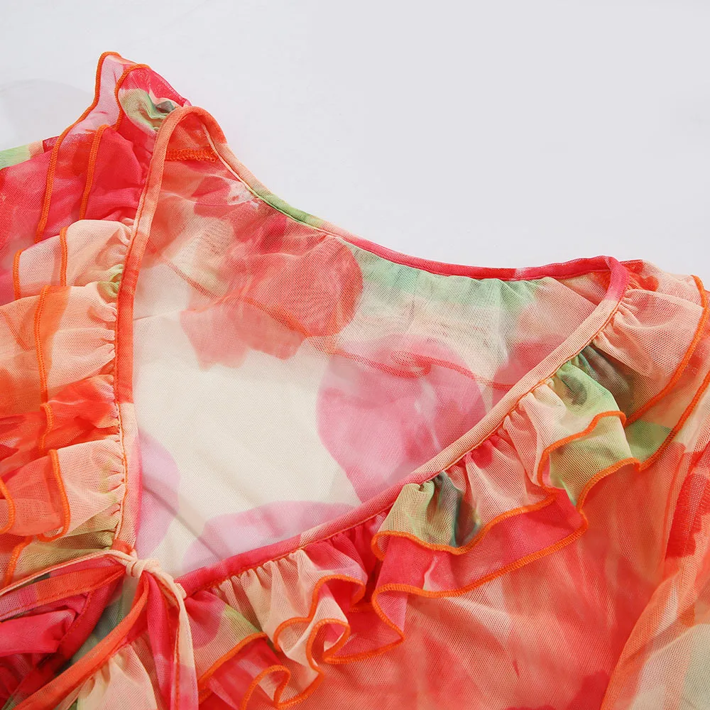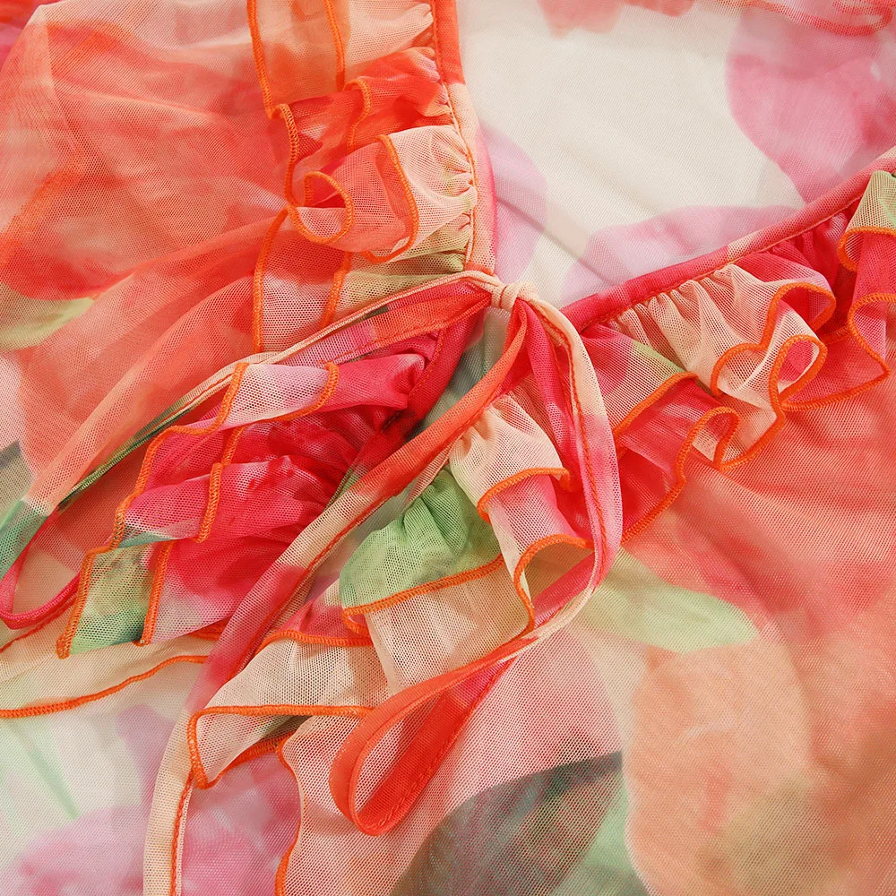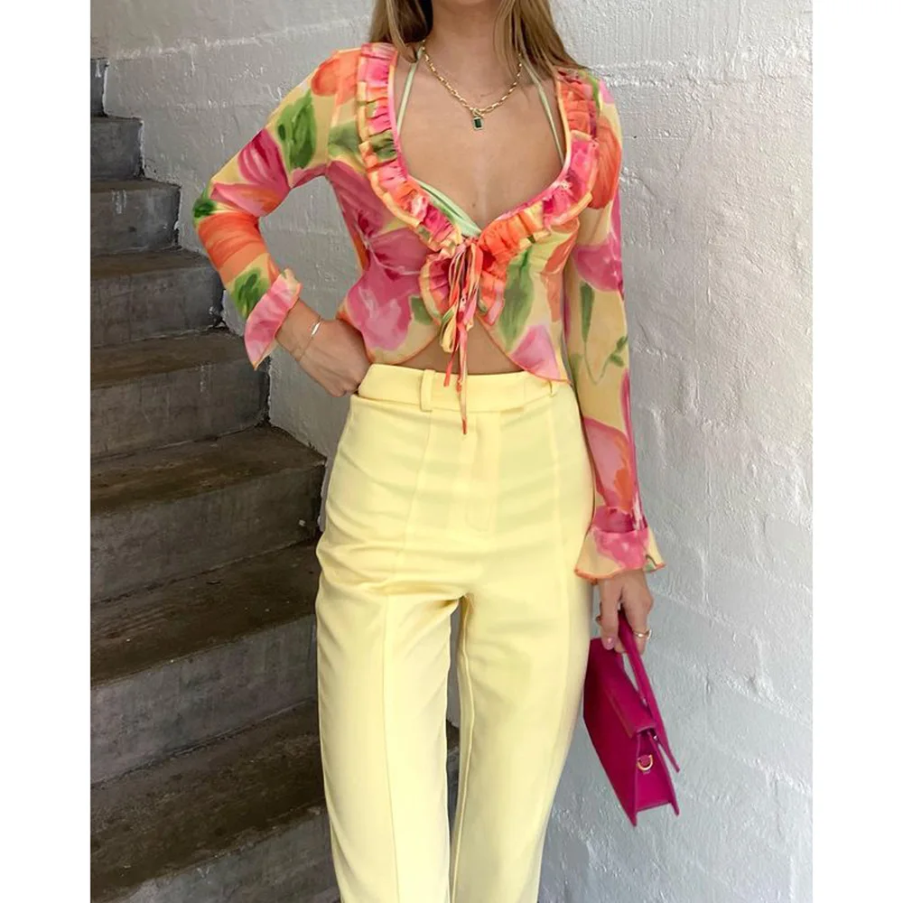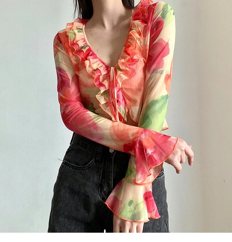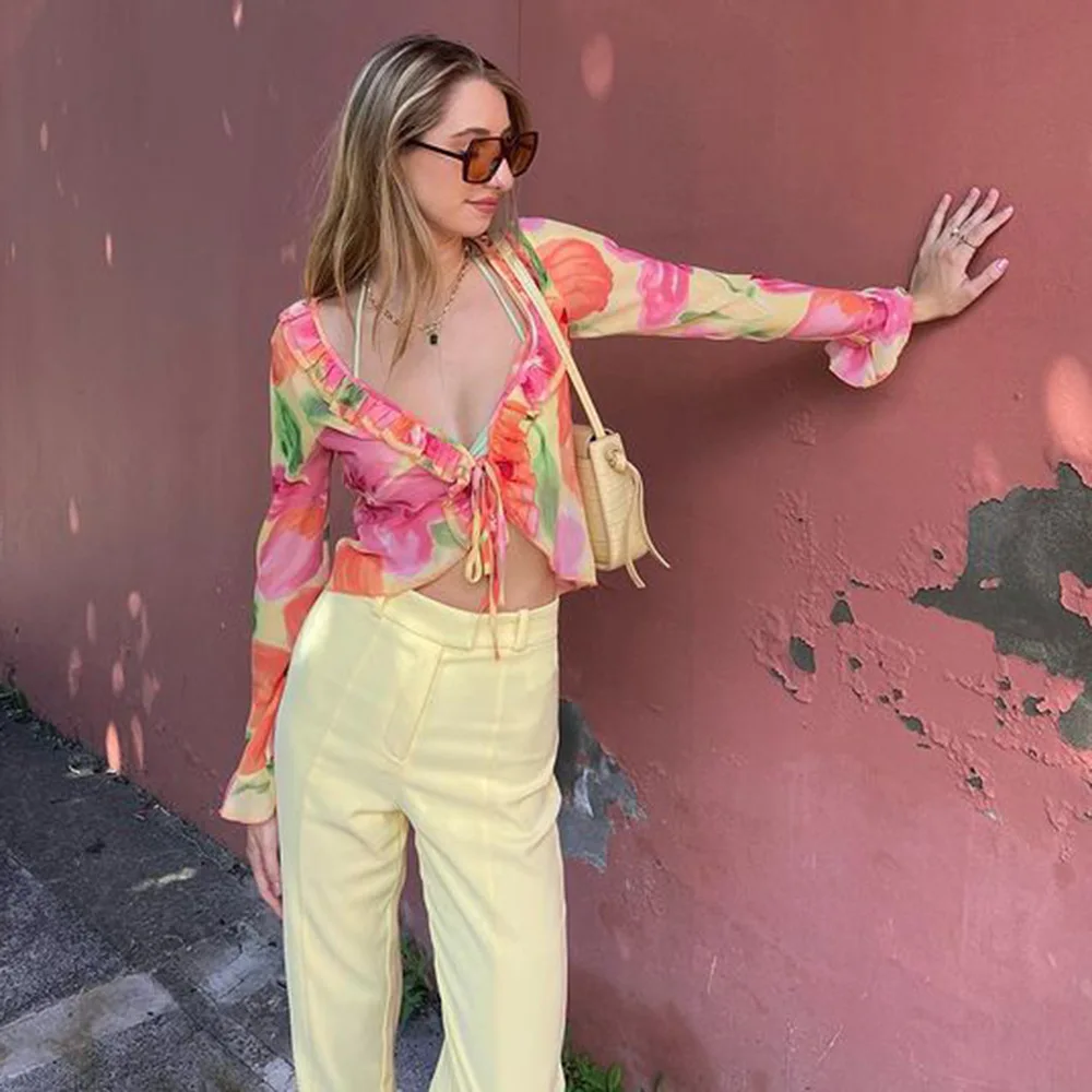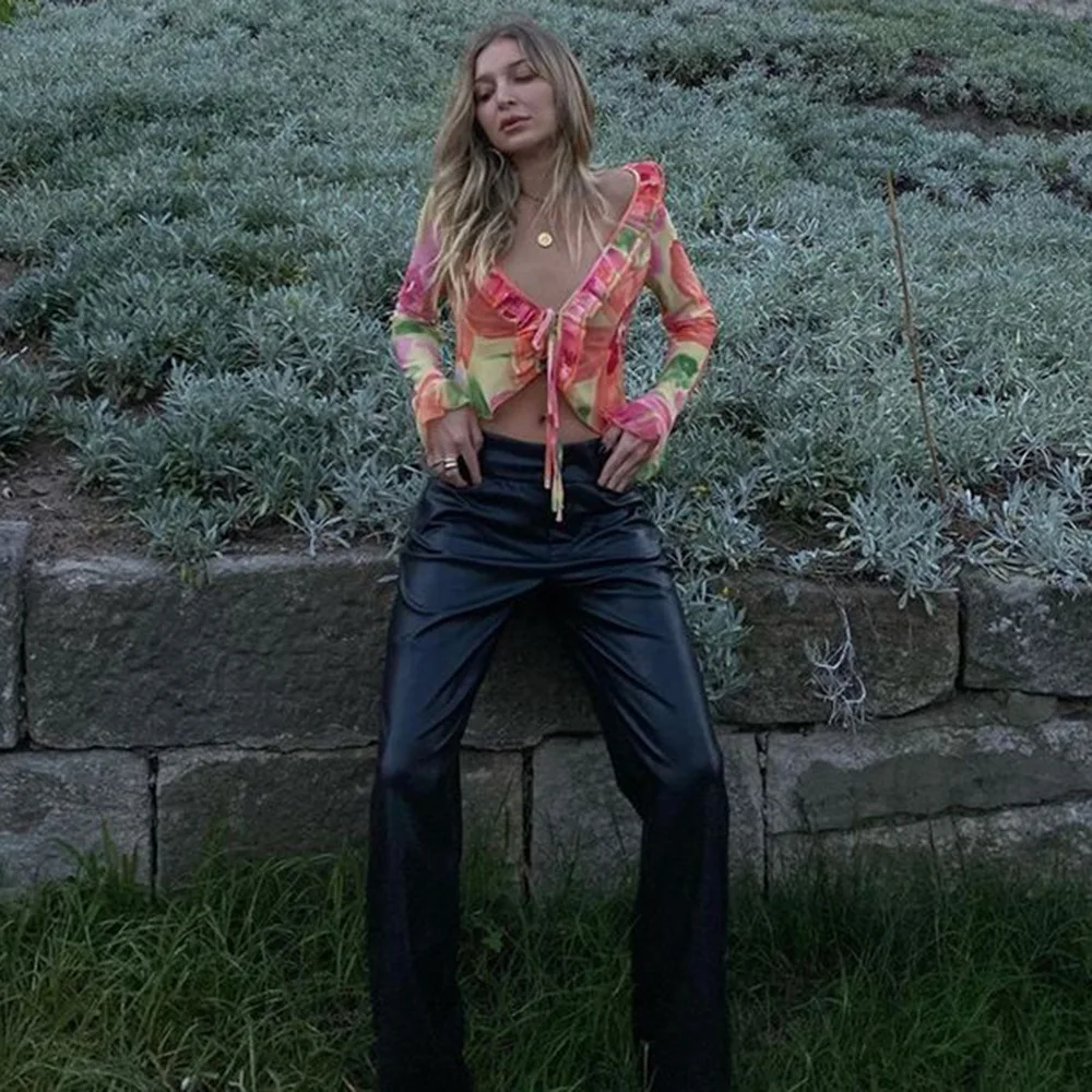 Un ensemble qui combine sexy, sophistication et originalité. Le mélange du transparent, du V profond et du cardigan imprimé crée un look immédiatement stylé — parfait pour se démarquer en été.