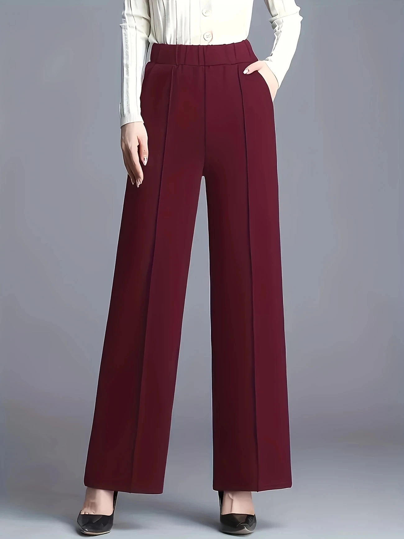 Un pantalon chic, confortable et polyvalent, idéal pour créer des tenues automnales et hivernales élégantes. Sa coupe droite drapée et sa taille haute en font une pièce essentielle pour un look moderne et féminin.