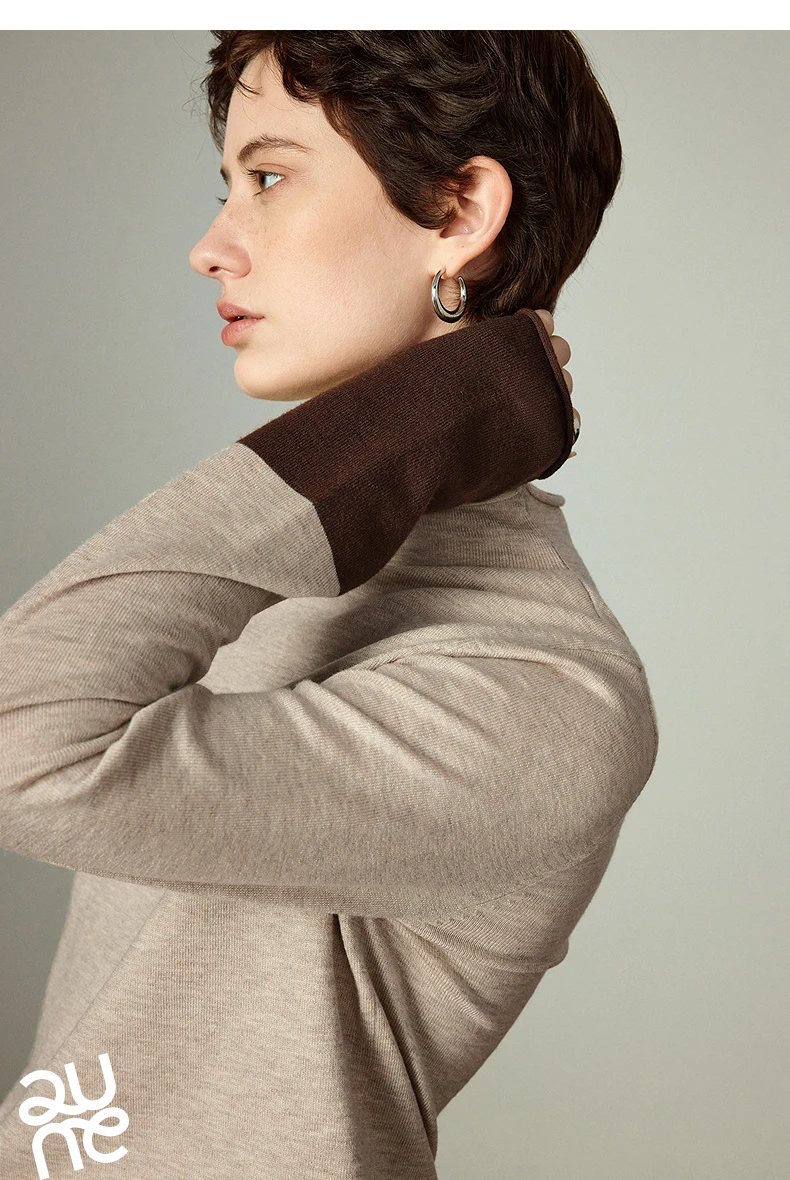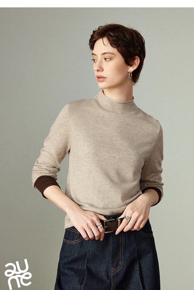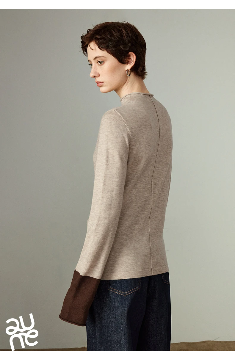 Pull Femme – Col Demi-haut, Coupe Slim, Color-block Ambre, Base Layer Chaud