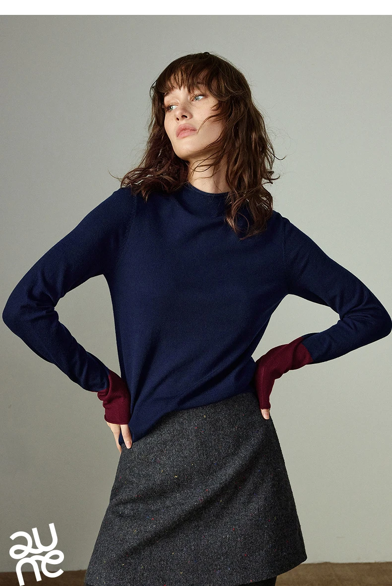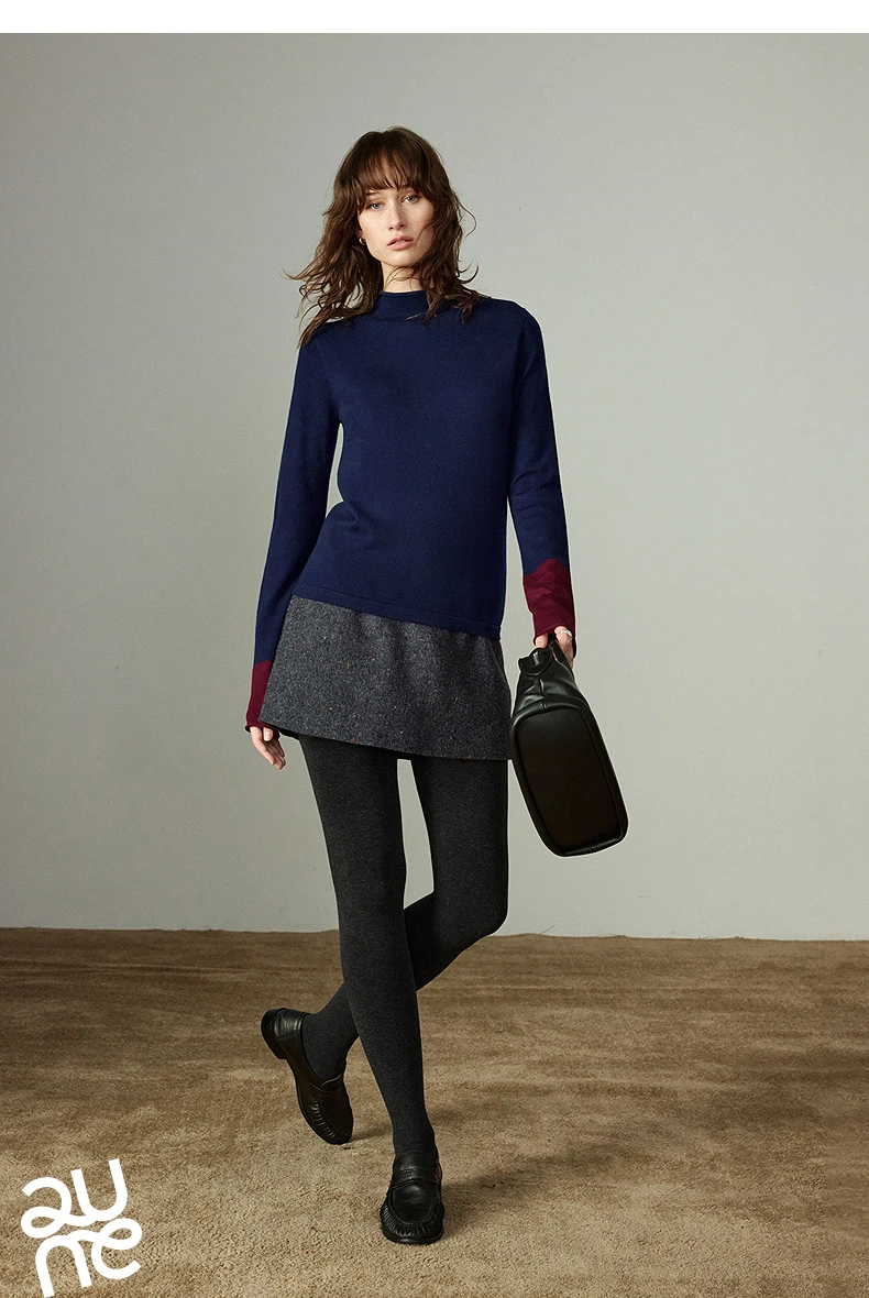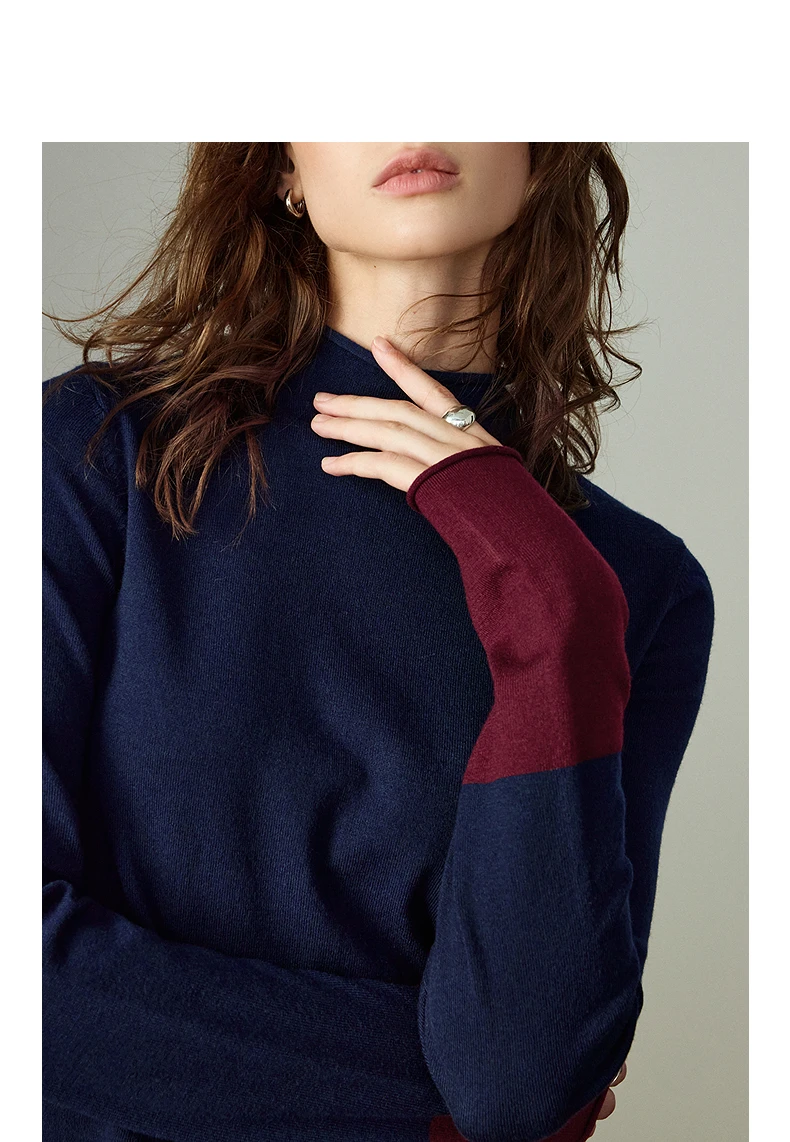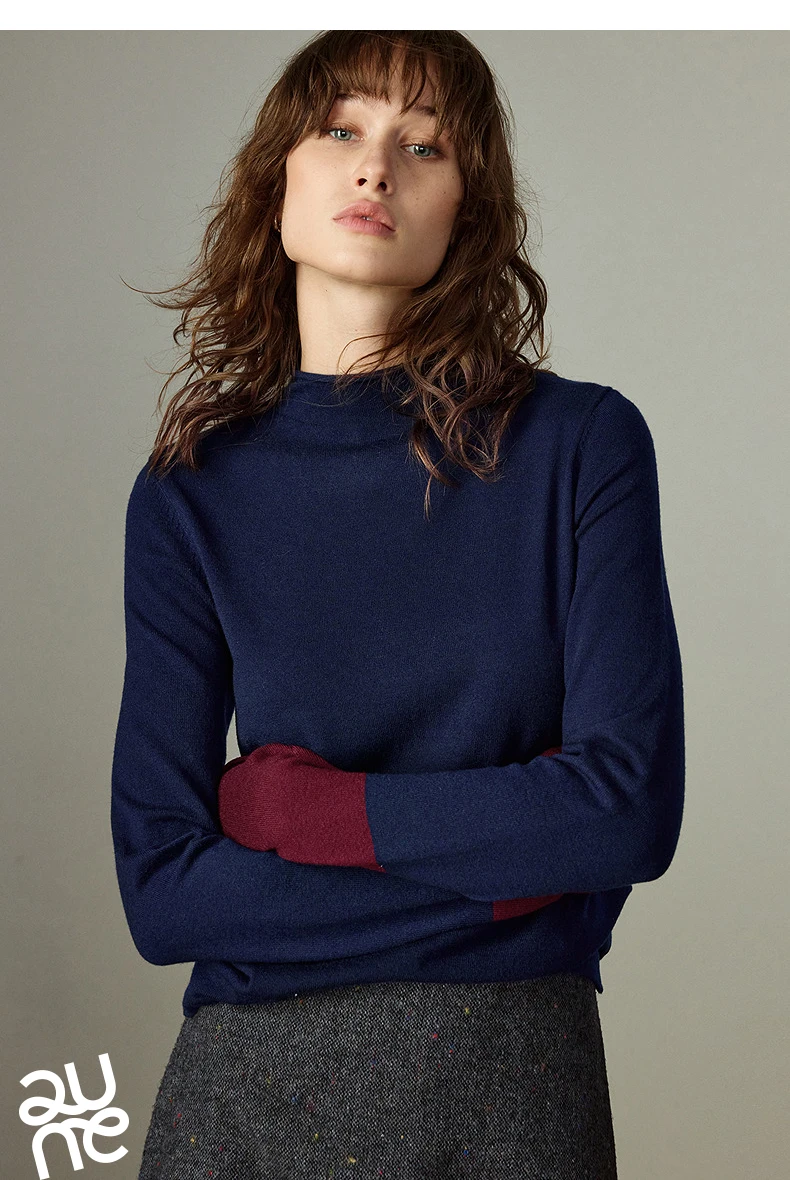 Pull Femme – Col Demi-haut, Coupe Slim, Color-block Ambre, Base Layer Chaud