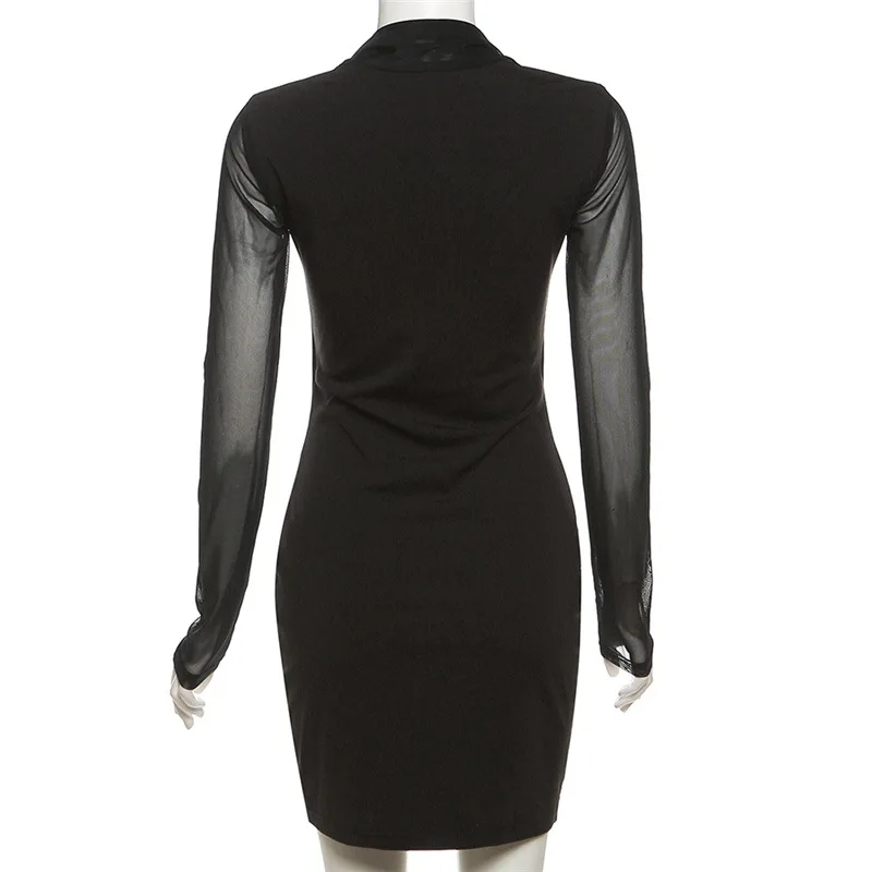 Adoptez un look moderne et ultra-féminin avec cette robe slim à manches longues, parfaite pour la nouvelle saison. Son design à la fois élégant et sexy met en valeur la silhouette grâce à une coupe ajustée et un tissu mesh délicatement transparent.